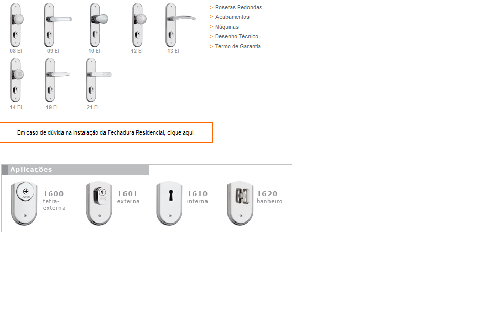 Disponível na cor cromada. Fechaduras externa, interna e wc. |